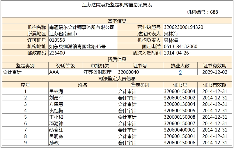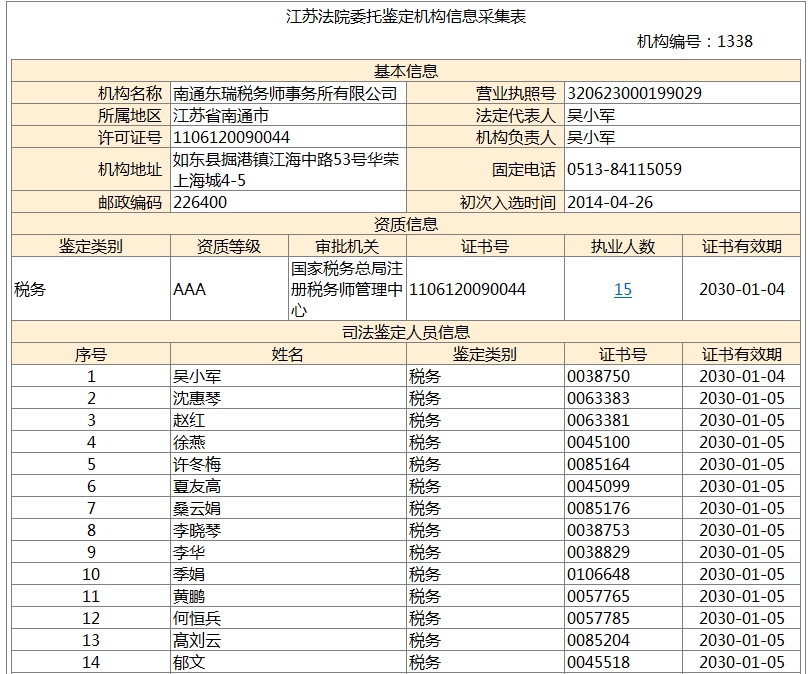 南通瑞東會計師事務(wù)所、南通東瑞稅務(wù)師事務(wù)所均進(jìn)入《國家司法鑒定人和司法鑒定機構(gòu)名冊》