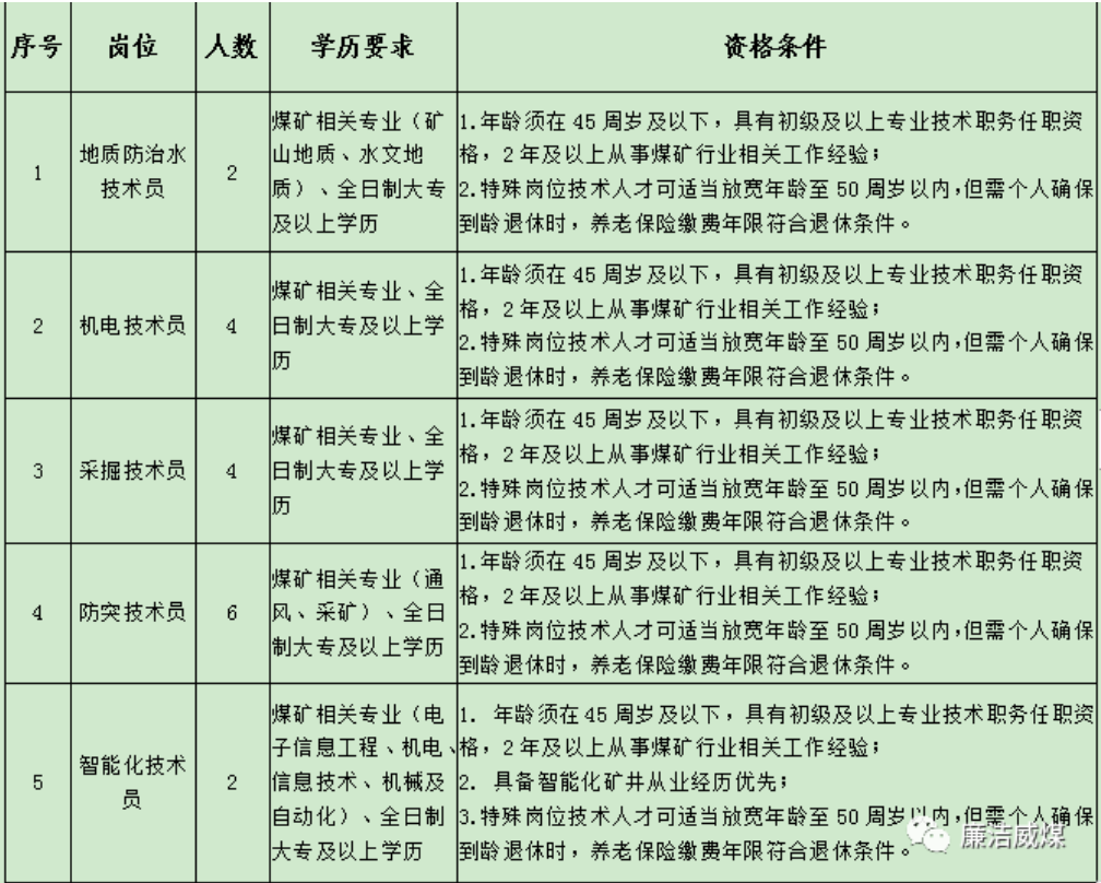 云南能投威信煤炭有限公司計(jì)劃招聘專(zhuān)業(yè)技術(shù)人才18名,具體招聘崗位及資格條件下表: