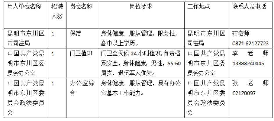 昆明市東川區(qū)司法局等三個單位公益性崗位招聘啟事